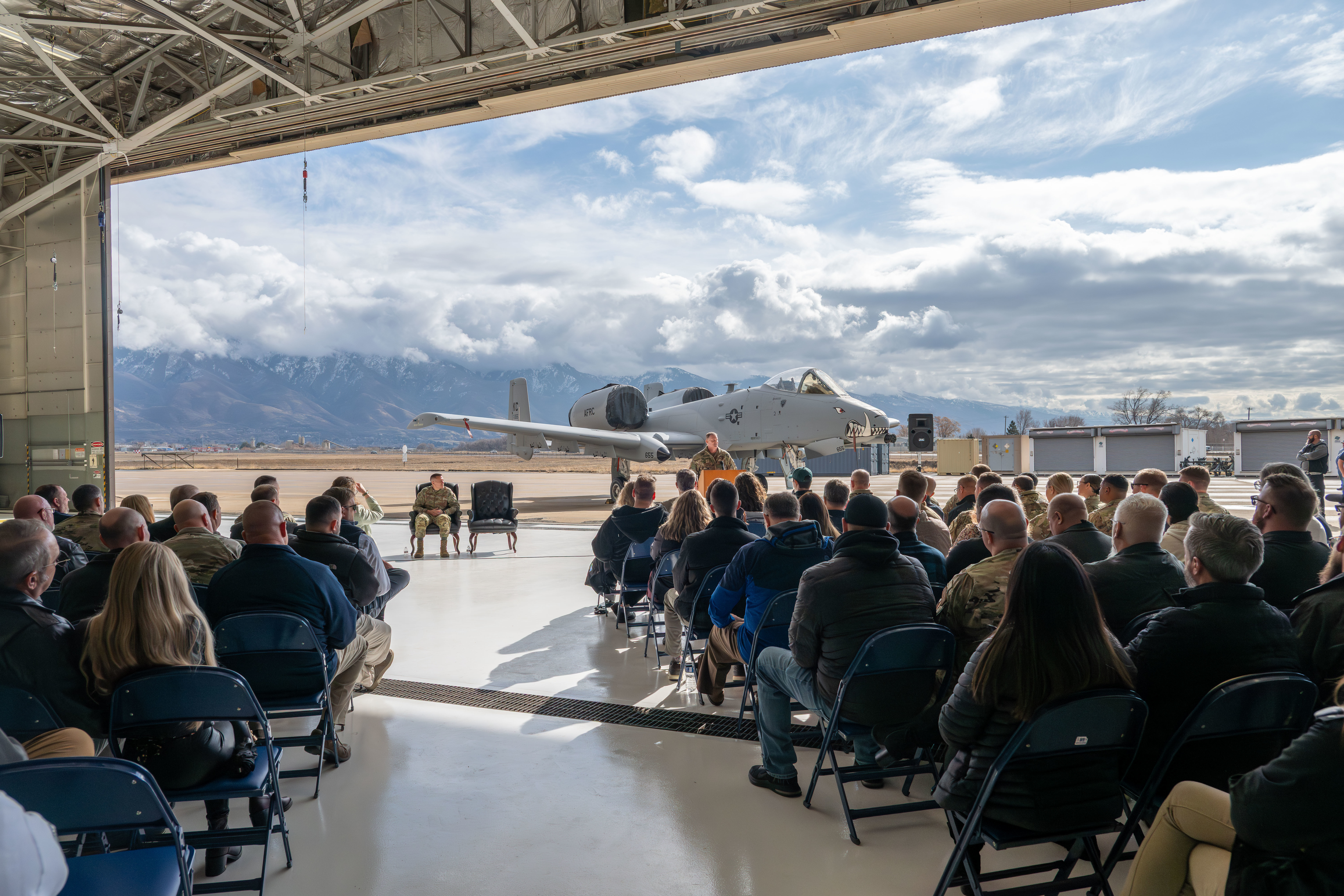 Royal Canadian Air Force BGen Leighton James, RCAF General Air and Space Readiness director, right, engages with Virtual Flag: Coalition briefer during distinguished visitor tour at the 705th Combat Training Squadron, also known as the Distributed Mission Operations Center, at Kirtland Air Force Base, New Mexico, Oct. 29, 2025. Exercise VFC serves as a train as you fight exercise by integrating the full spectrum of air, land, surface, space, and cyber warfighters in a virtual battlespace in joint and coalition environments; forces from the United States, United Kingdom, Australia, and Canada participated. (Screens were blurred for security reasons; image was cropped to focus on subject.) (U.S. Air Force photo by Airman Alenne Mojica)