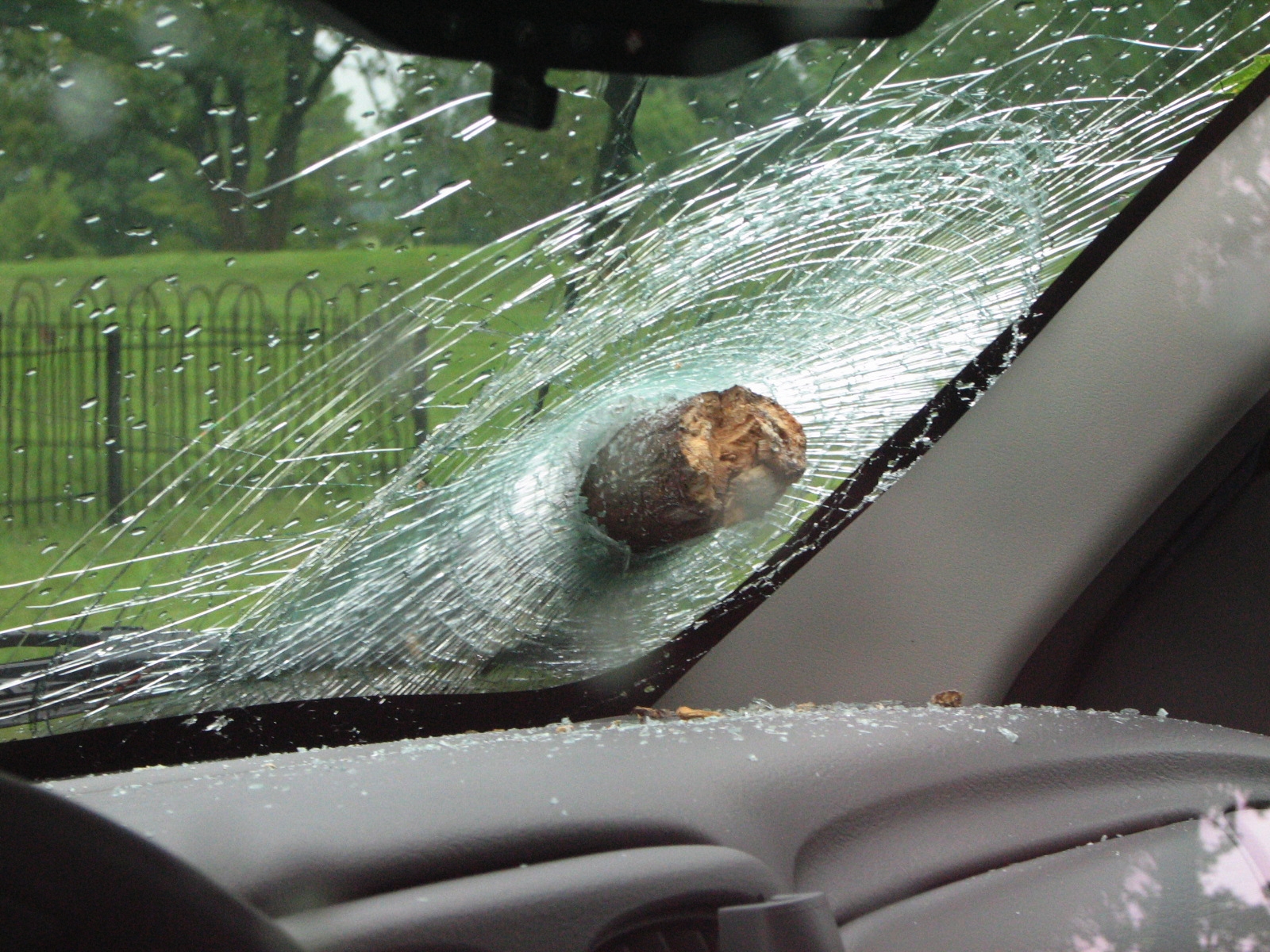 WRIGHT-PATTERSON AIR FORCE BASE, Ohio — Glass is thrown on the dash of a vehicle parked near the National Air and Space Intelligence Center after a tree crashed through its windshield, following a sever thunderstorm Aug. 3. The storm packed winds recorded at more than 70 miles an hour. A number of trees and limbs were blown down throughout the base. Some buildings experienced structural damage, and many base members were forced to deal with power outages. Emergency crews were deployed following the storm, and base civil engineering crews spent long hours over the weekend cleaning up debris. (Air Force photos by Hector Cruz)